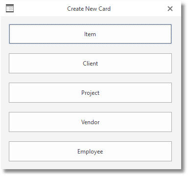 When you create a new Item card, the only information that is immediately required is the Item Name or Client Description. All other details can be left blank if desired; however, when the item is to be created into a Project, the Project field will also be required.