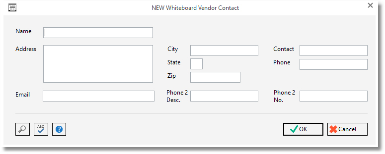 Enter the Vendor Contact information desired into the fields. When finished, select OK.